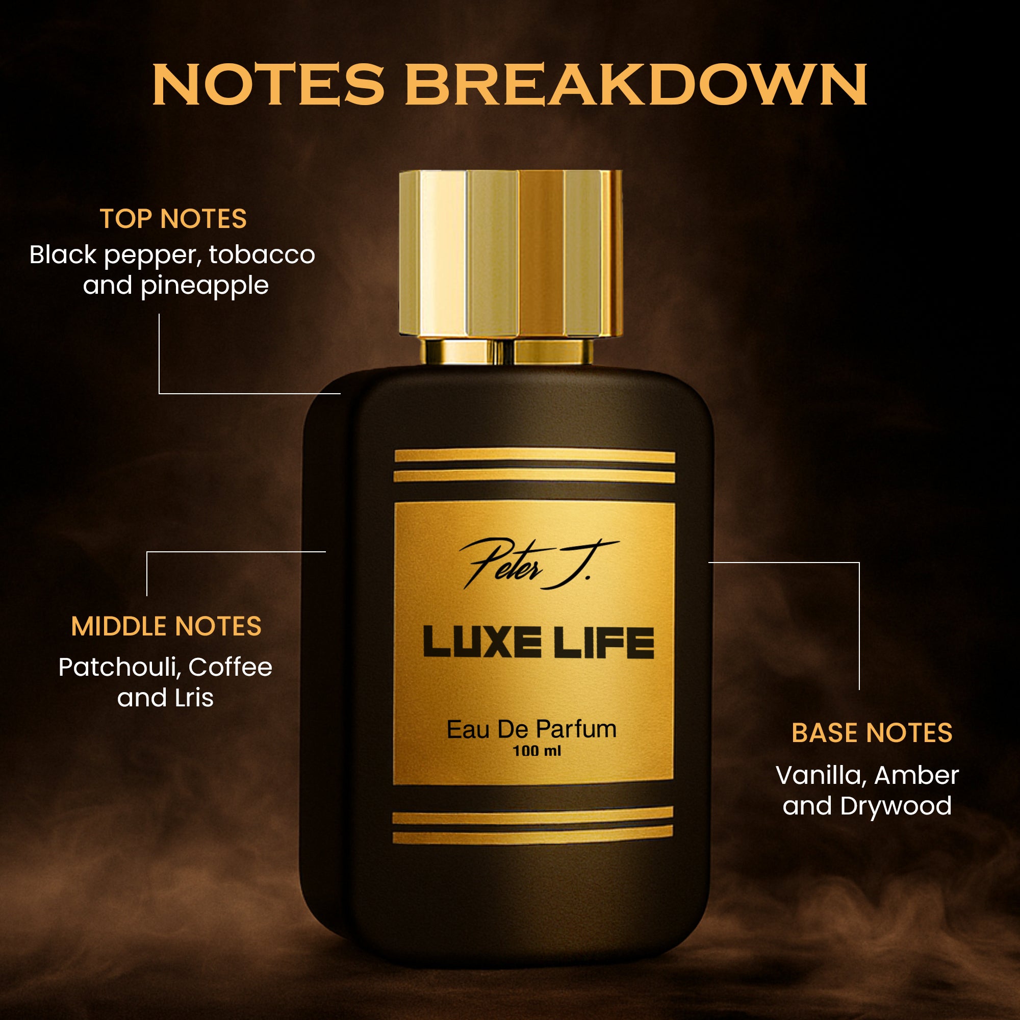 Concept: A bold, sophisticated, and irresistibly refined fragrance, Luxe Life captures the spirit of modern elegance and timeless strength—crafted for those who walk with confidence and leave a trail of unforgettable charm.